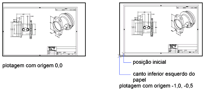 O deslocamento de plotagem especifica um deslocamento da área de plotagem relativamente ao canto inferior esquerdo (origem) da área imprimível ou à aresta do papel.