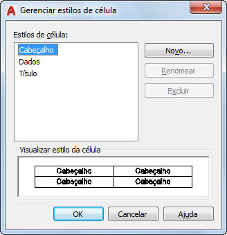 Exibe todos os estilos de célula dentro do estilo atual de tabela e permite criar ou excluir um estilo de célula.