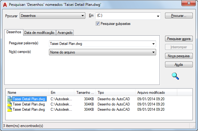 Especifica o nome do desenho, bloco, camada, refex ou outro tipo de conteúdo que deseja localizar.