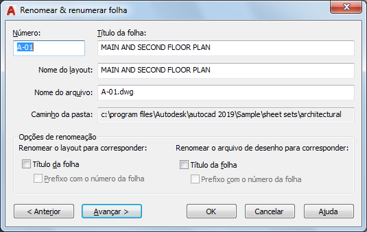 Quando selecionada, altera o nome do arquivo de desenho para corresponder ao título da folha.