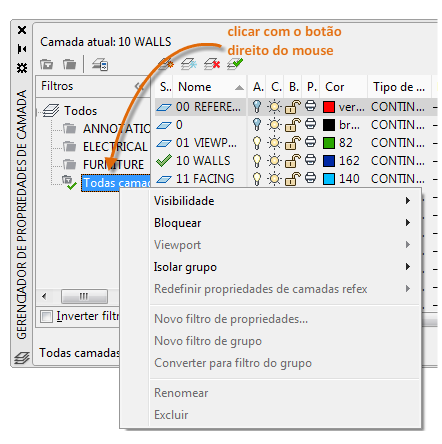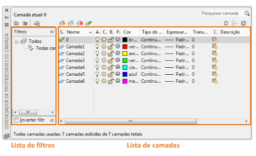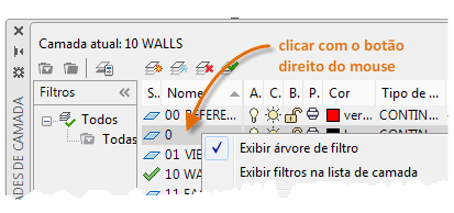 Exibe uma lista dos filtros de camada no desenho. Clique em