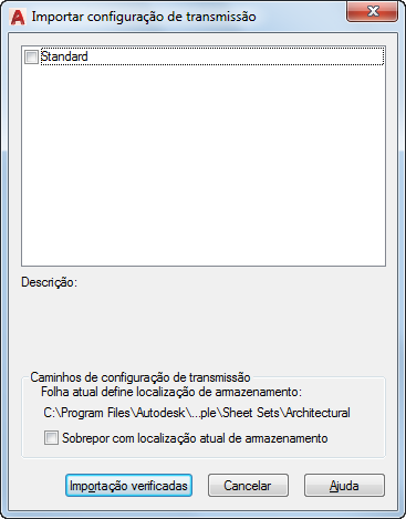 Exibe uma lista de configurações de transmissão Verifica aqueles que deseja importar para o conjunto de folhas atual.