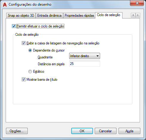 Determina se o recurso de ciclo de seleção está ativado. (Variável de sistema SELECTIONCYCLING).