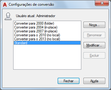 Exibe a caixa de diálogo Modificar configuração de conversão, na qual você pode especificar opções para a conversão de desenho selecionada.