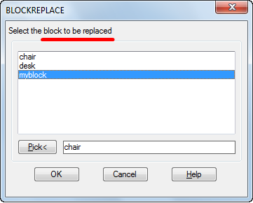 BLOCKREPLACE procura em todo o desenho por um bloco especificado e o substitui por outro bloco que você especificar. Depois, é possível utilizar o comando ELIMINAR para remover a definição de bloco sem referência do desenho.