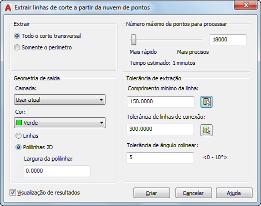 Caixa de diálogo Extrair linha de corte da nuvem de pontos