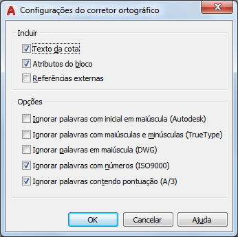 Especifica as opções de texto que serão verificadas em seu desenho.