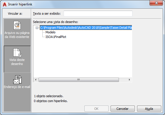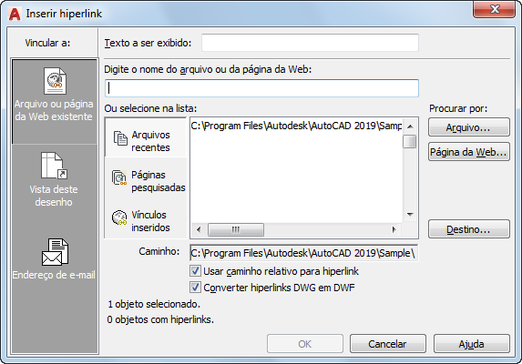 Exibe o caminho do arquivo associado ao hiperlink. Se a opção Use Relative Path for Hiperlink estiver selecionada, será exibido somente o nome do arquivo. Do contrário, o caminho completo e o nome do arquivo estarão relacionados.