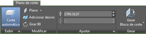 Ao selecionar uma linha de corte/seção, a guia contextual Plano de corte é exibida na faixa de opções.