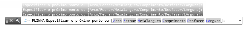 Um janela de comandos desencaixada com apenas uma linha exibe um histórico de prompt temporário enquanto o comando estiver em andamento. Utilize este método para alterar o número de linhas do histórico.