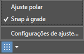 | Pesquisa | Modo snap | Ativa o snap à grade. Quando os snaps de grade estão ativados, o cursor efetua o snap a intervalos de grade especificados conforme você move o cursor. Quando os snaps polares são ativados, o cursor efetua snap a distâncias especificadas ao longo do caminho de alinhamento polar especificado. |