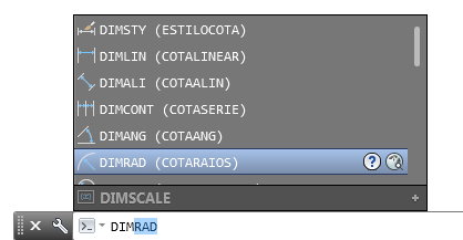 Se você começar a digitar o nome do comando ou variável de sistema na linha de comando, o recurso de preenchimento automático exibe as suas opções. Por exemplo, se você inserir cota, todos os comandos e as variáveis de sistema que começam com aquelas letras são listados.
