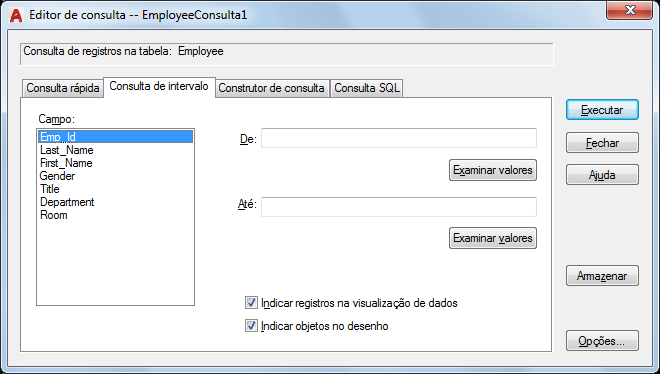 Abre a caixa de diálogo Visualização de dados e opções de consulta.