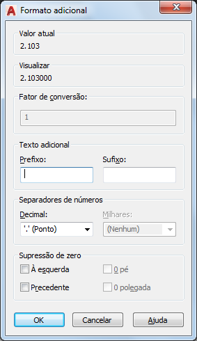 Controla a supressão de zeros à esquerda e à direita e de pés e polegadas que possuem o valor igual a zero.