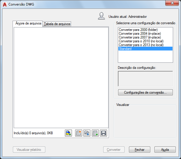 Abre uma caixa de diálogo padrão de seleção de arquivos, na qual você pode selecionar arquivos de desenho para adicionar à lista de conversão. Este botão está disponível na guia Árvore de arquivos e na guia Tabela de arquivos.