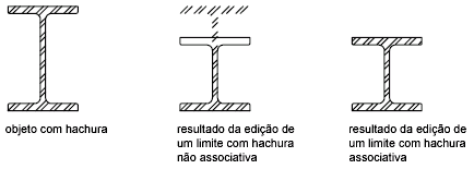 Por padrão, as hachuras delimitadas são associativas, o que significa que o objeto de hachura é associado aos objetos de limite de hachura: alterações no objeto de limite são automaticamente aplicadas à hachura.