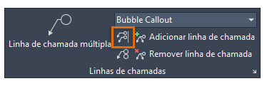 Na faixa de opções, clique na guia Anotar e localize o painel Linhas de chamada. O painel confirma que Chamada de detalhe em bolha é o estilo atual da linha de chamada múltipla.