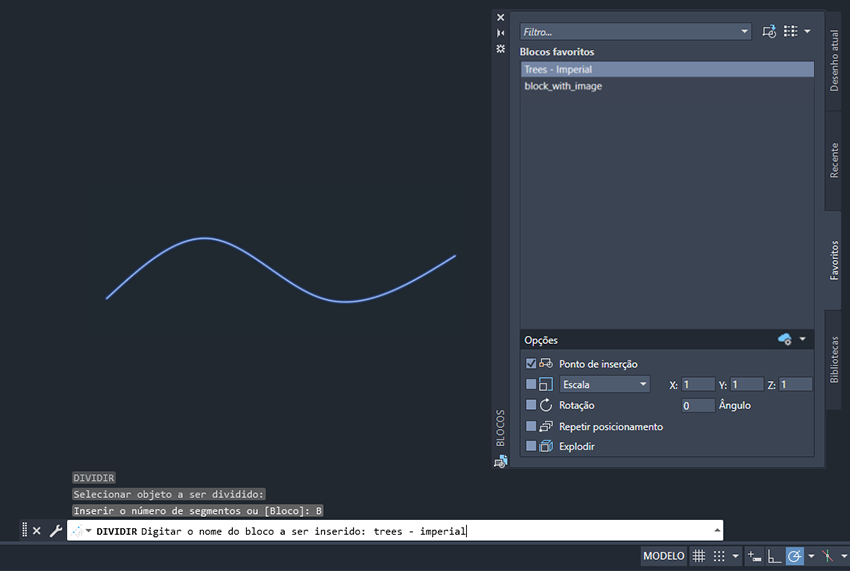 DIVIDIR Cria objetos ou blocos espaçados por igual ao longo do comprimento ou perímetro de um objeto.