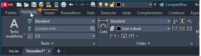 Neste exercício, você vai reposicionar a guia Anotação e o painel Cotas.