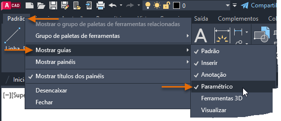 A marca de seleção na frente da guia Paramétrico agora deve ser removida e a guia deve estar oculta na interface.