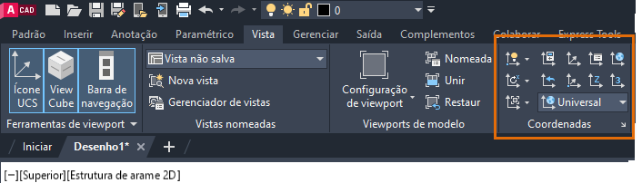 Neste exercício, você ocultará a guia da faixa de opções Paramétrico e exibirá o painel Coordenadas na guia Vista.