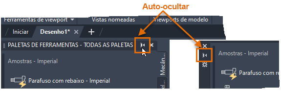 Mover o cursor sobre a paleta recolhida a expande temporariamente.