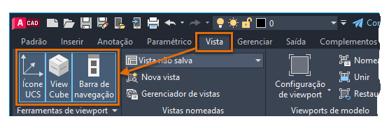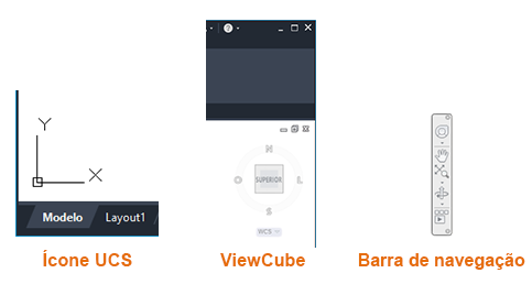 O sistema de coordenadas do usuário é útil em alguns desenhos 2D e essencial para a modelagem 3D. Se você não usar o UCS com frequência, será possível ocultá-lo facilmente. O mesmo se aplica ao controle do ViewCube e à barra de navegação.