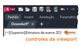 Os controles da viewport são usados principalmente para a modelagem 3D. Se você não os estiver usando, será possível ocultar esses controles para reduzir o ruído visual nos desenhos 2D.