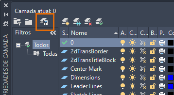 Insira o comando CAMADA para abrir o Gerenciador de propriedades de camada. Pesquisa