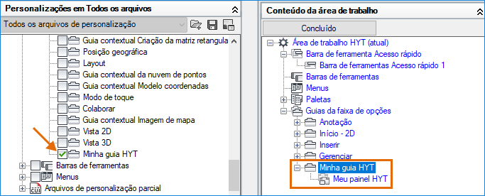 A Minha guia HYT é adicionada ao nó Guias da faixa de opções no painel Conteúdo da área de trabalho.