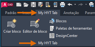 Neste exercício, você vai adicionar cinco comandos relacionados a blocos ao painel da faixa de opções que acabou de adicionar, Meu painel HYT.