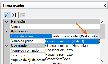 No painel Propriedades, à direita, em Aparência, clique na lista suspensa Estilo do botão e selecione Grande com texto (Vertical).