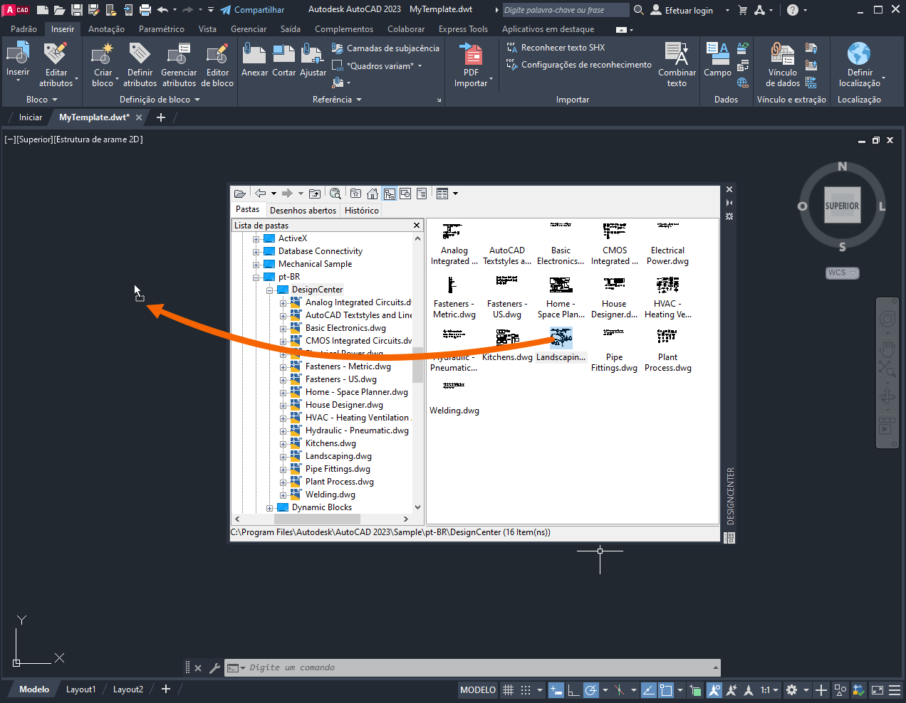 Adicione as camadas, os blocos e os estilos do Landscaping.dwg ao template.