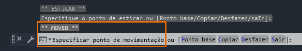 O prompt de comando indica o modo atual. É possível mover o cursor para confirmar o modo. Eventualmente, você volta para o modo esticar.