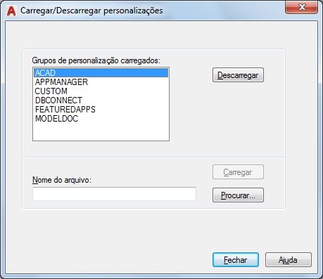 Especifica o arquivo a ser carregado quando você escolhe Carregar. É possível inserir o nome do arquivo ou escolher Procurar para exibir a caixa de diálogo Selecionar arquivo de personalização (uma caixa de diálogo padrão de seleção de arquivos).