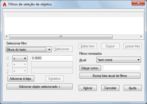Sai da caixa de diálogo e exibe o prompt Select Objects, na qual é criado um conjunto de seleção. O filtro atual é utilizado nos objetos que você selecionar.
