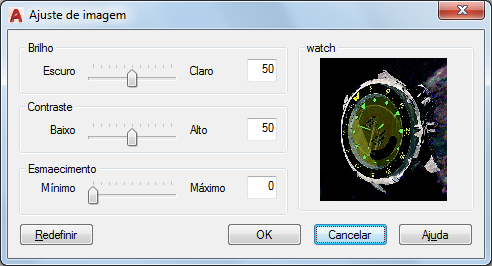 Controla como a imagem é exibida, ajustando as configurações de brilho, contraste e esmaecimento da imagem selecionada.