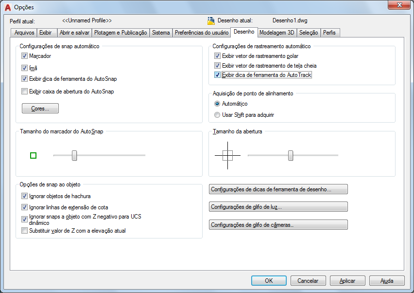 Guia Desenho (Caixa de diálogo Opções)