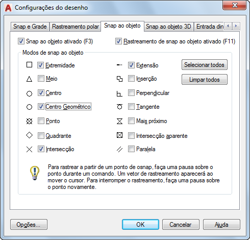 Controla se todos os modos de snap ao objeto especificado estão ativados ou desativados. (variável de sistema OSMODE)