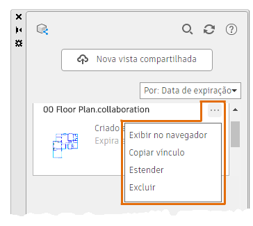 A paleta Vistas compartilhadas fornece uma forma de exibir vistas compartilhadas de um desenho e de publicar e responder a comentários de colegas e clientes através de suas contas para Web e dispositivos móveis da Autodesk.