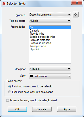 Aplica o critério de filtro a todo o desenho ou ao conjunto de seleção atual (se existir um).