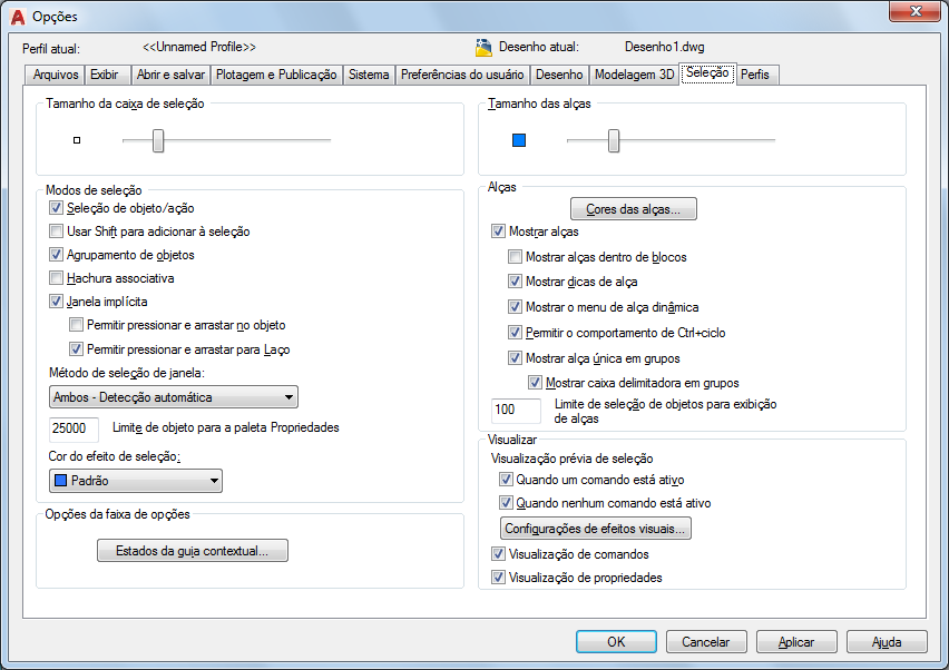 Controla as configurações relativas aos métodos de seleção de objeto.
