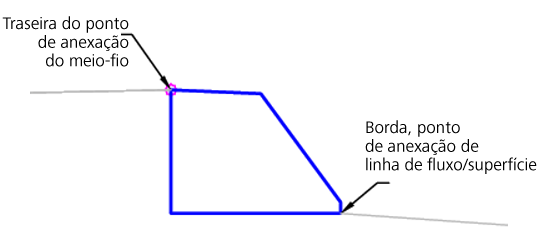 | Ponto de anexação | Especifica o local do ponto de anexação do meio-fio. | Borda/traseira do meio-fio/superfície de linha de fluxo |