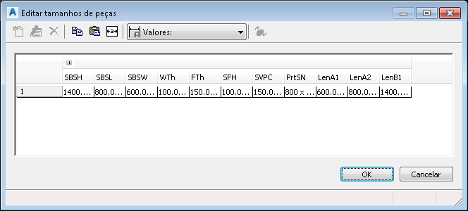 Dica: Você pode copiar e colar valores de outras famílias de peças usando a funcionalidade comum de copiar e colar do Microsoft® Windows (CTRL+C e CTRL+V). Abra outra peça no Gerador de peça, selecione o parâmetro de tamanho que deseja copiar e, a seguir, cole os valores selecionados no parâmetro desejado de sua peça. Você também pode criar uma lista de valores no Microsoft® Excel, selecionar a lista de valores que deseja adicionar e, a seguir, colar os valores no parâmetro desejado de sua peça.
