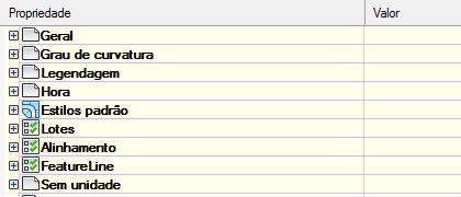 No nível de comando, esta caixa de diálogo também contém configurações específicas de comando, tais como as configurações dos Lotes e dos Alinhamentos que são utilizadas pelo comando CreateSite.
