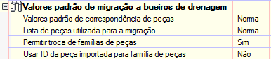 A nova configuração Permitir alternância de família de peças fornece a habilidade para controlar o comportamento da alternância entre famílias de peças ao importar um arquivo Storm Sewers (STM). O valor padrão para esta configuração é Sim para coincidir com o comportamento do AutoCAD Civil 3D 2011 e versões anteriores.