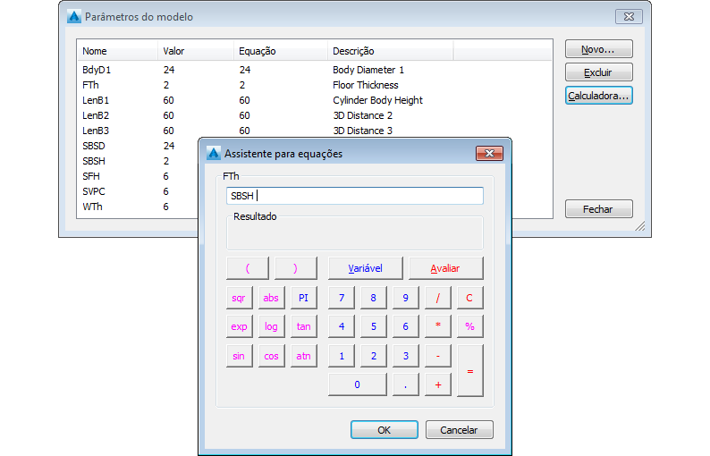 - Dê um duplo clique no valor da coluna Equação para obter um parâmetro modelo (tal como LenB1), e você poderá inserir um valor ou uma equação para especificar o comprimento da peça.