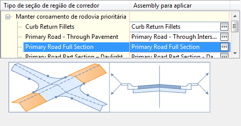 O mesmo acontece quando você seleciona a região do corredor “Seção total da rodovia primária”.
