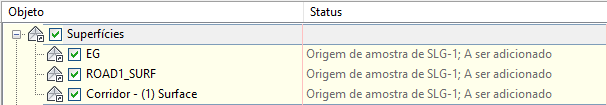 As caixas de diálogo individuais para a criação de referências de atalhos aos dados não serão exibidas durante esse processo. Se desejar especificar os ajustes padrão utilizados na criação das referências antes de usar o comando Criar referência a grupo de linhas de amostra, use as configurações de comando aplicáveis, como CreateSurfaceReference, CreateProfileReference, CreateNetworkReference e CreateCorridorReference.