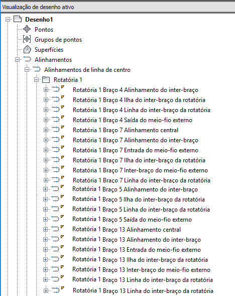 Conforme os objetos de rotatória são criados, eles são exibidos como rotatórias denominadas.